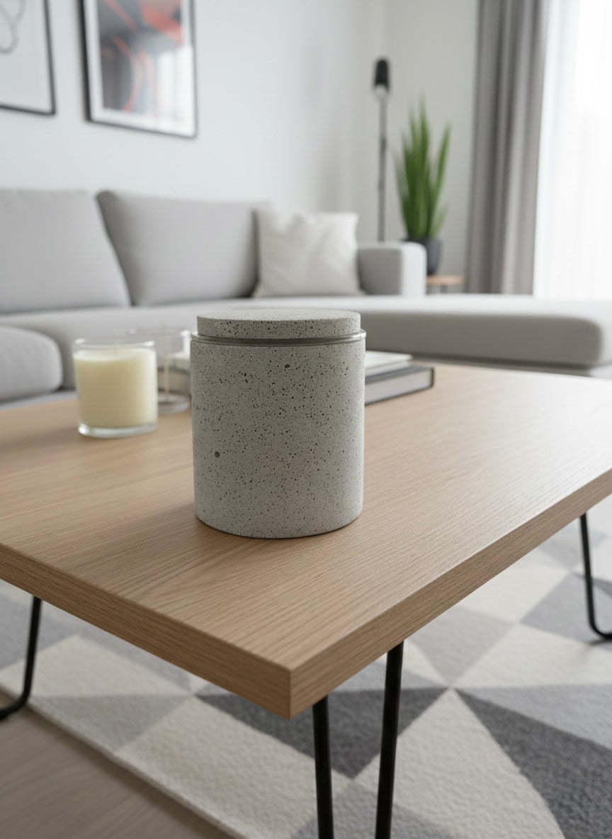 Pure and sculptural, this candle pot is handcrafted using Jesmonite AC730 in Silver Granite, creating a timeless object that blends seamlessly into modern interiors.